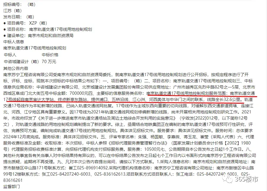 值得注意的是,早在2023年8月,南京轨道交通17号线用地控制规划中标公告就已经出炉,17号线起自江北、终于江宁,线路全长32.6公里。