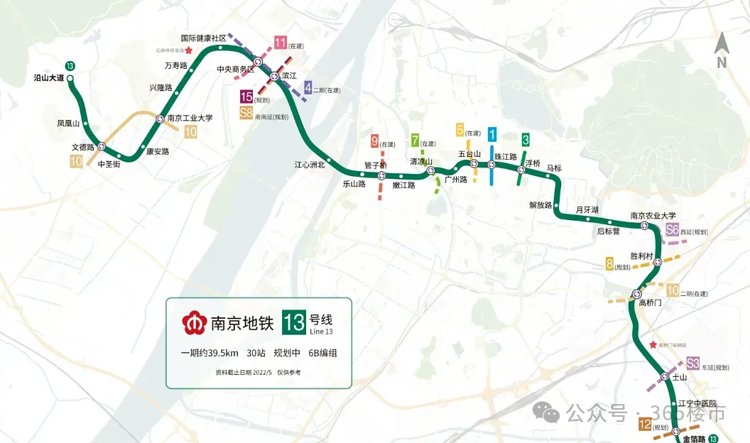 并且,作为过江线路,13号线贯穿了江南、江北两大主城,将长江两岸的联系再一次拉近,进一步促进南京的拥江发展战略。