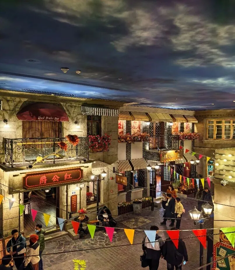 民国馆是一条精心复原的地下风情商业街。留声机,光华书局、老茶馆的雨花茶、黑色的老爷车等,都是民国时期的复原物件。从西式咖啡到传统的中药铺,从旗袍到西装,每一件物品都承载着历史的温度,古色古香的金陵韵味扑面而来,让那段岁月变得鲜活可触。
