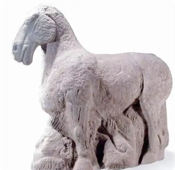 马的英武之姿,早已深入中国人的审美,被琢磨成各类艺术珍品,自是水到渠成。西汉霍去病墓前的《马踏匈奴》石雕,粗粝的石材,在汉代工匠的凌厉刀锋下,化作一匹昂首扬蹄的骏马,将匈奴侵略者踏于足下,马的雄浑与豪迈,英雄的骁勇与霸气,凝于一方石刻,无意之间成就了千古经典。