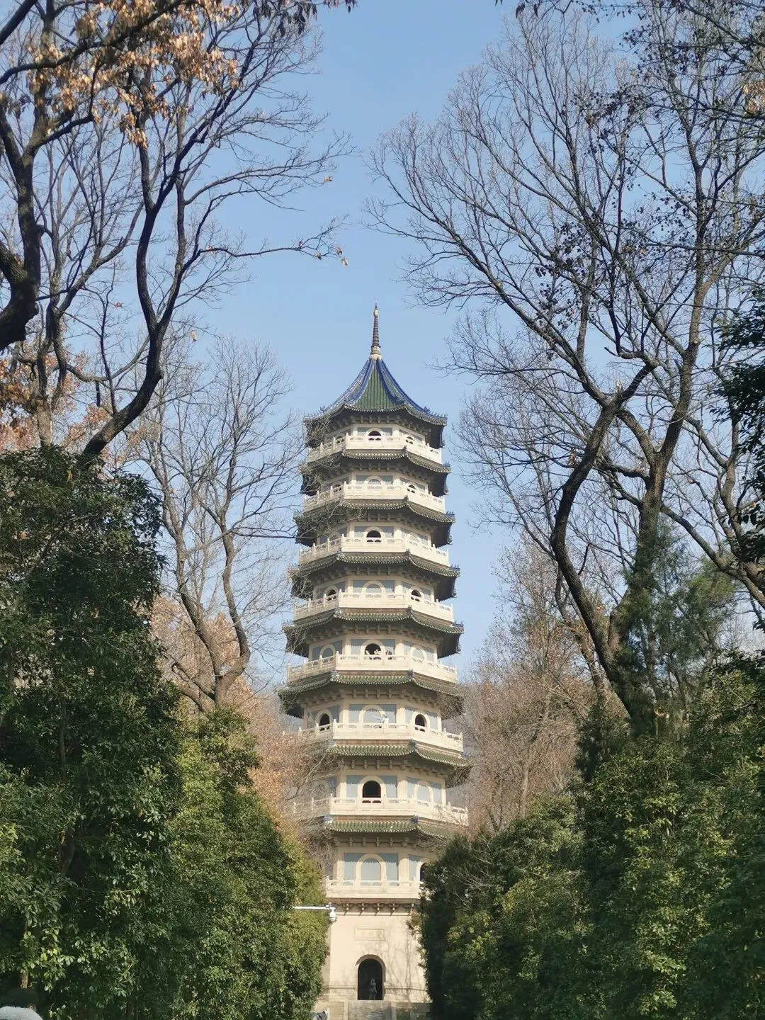 还记得灵谷寺古老的石殿里,原本放佛像的石台空空荡荡,一层浮灰在几缕阳光照耀下,反射着静谧的光。石台上方挂着国民党党歌,以及爱国烈士的名字,黑白色的字迹奏响了革命的凯歌,竟是何等庄严的一幅画面。也记得高达九层的灵谷塔内,文人墨客的悠悠气息,攀上最高层极目远眺,光洁的树干遮掩住大部分山峰,看不到那山峦尽头,如此壮阔。