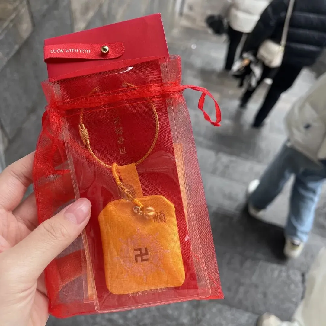 在鸡鸣寺的法物流通处,我们带走了一枚小小的祈福香包。明黄的缎面上,法轮与 “顺” 字相映,系着清脆的铜铃,每一次轻晃,都像是在为新年的顺遂祈福。