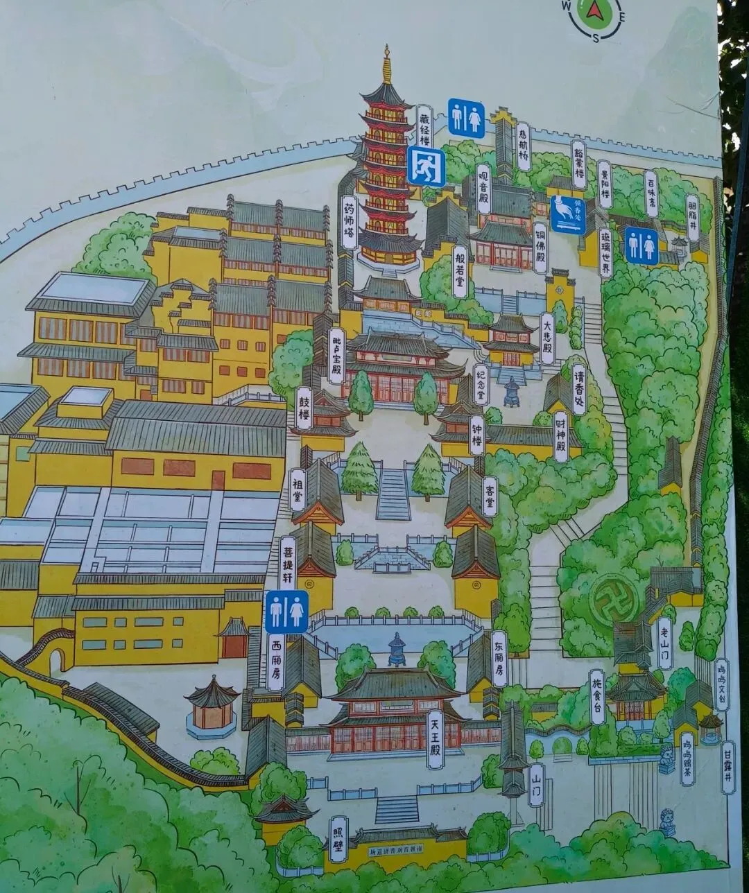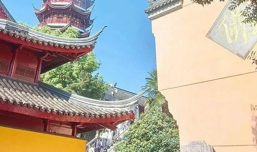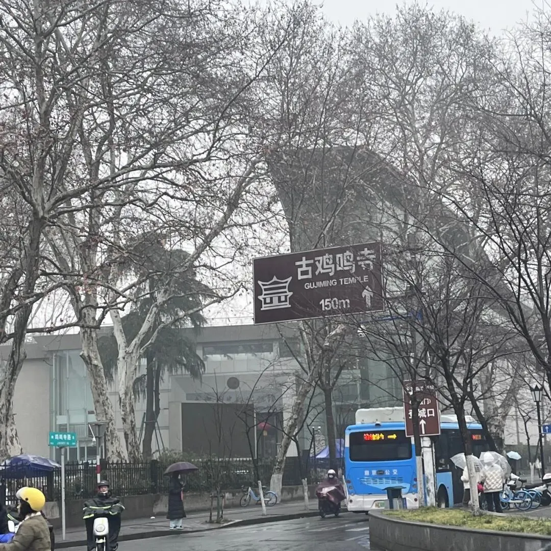 从山门的 “古鸡鸣寺” 匾额,到天王殿的飞檐翘角;从药师佛塔的金顶,到雨巷里的青石板路 ——每一张照片,都是我们与这座古刹的温柔对话。雨丝打湿了镜头,却洗亮了古寺的轮廓。游人的伞面在石板路上开出一朵朵花,公交驶过的鸣笛声,与古寺的钟声交织成独特的城市交响。这就是南京,既有千年的厚重,也有当下的鲜活。