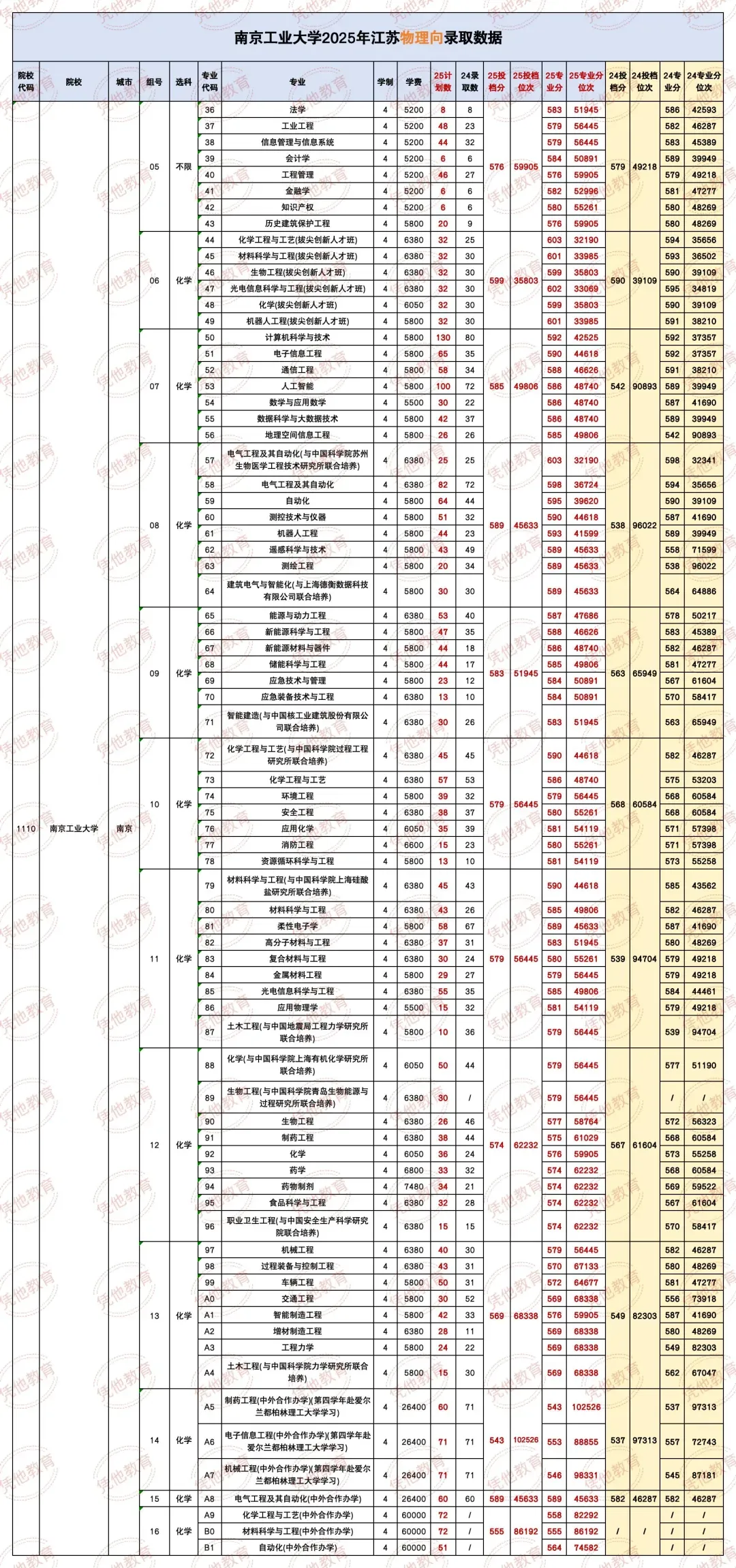 2025年南京工业大学综合评价招生人数不超过341人,招生专业(类)和计划如下: