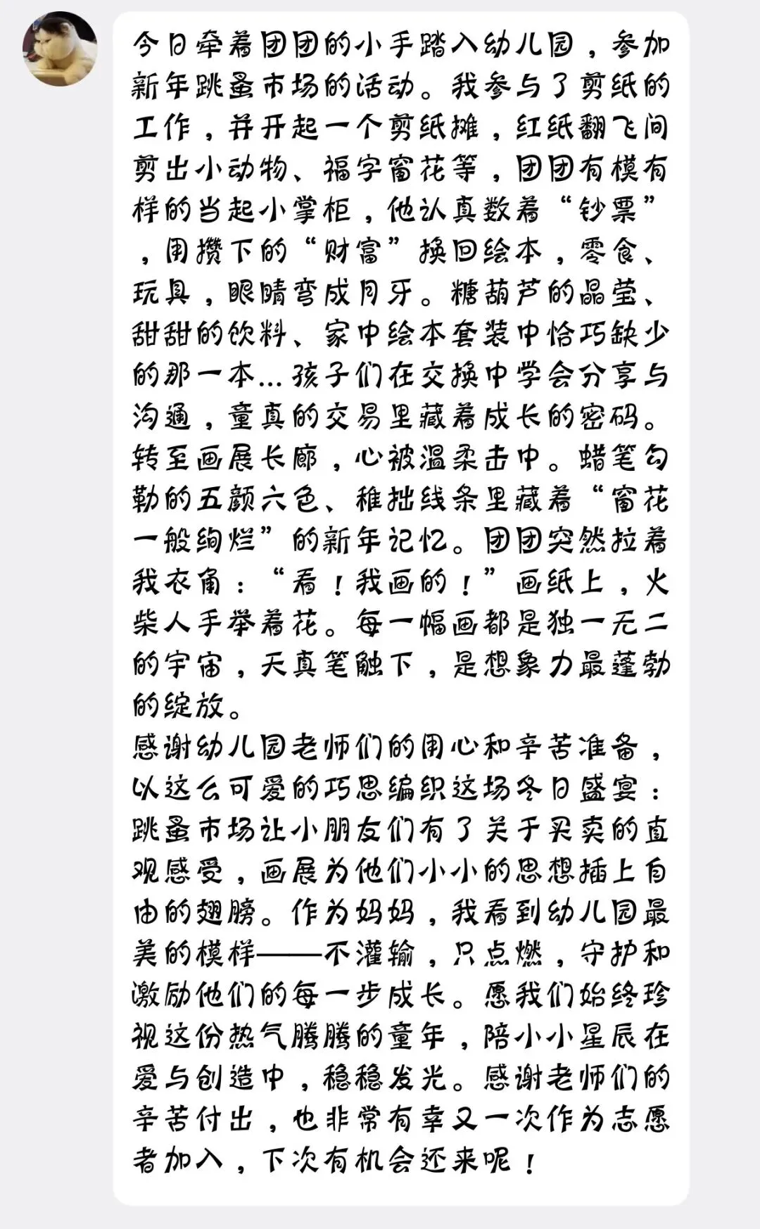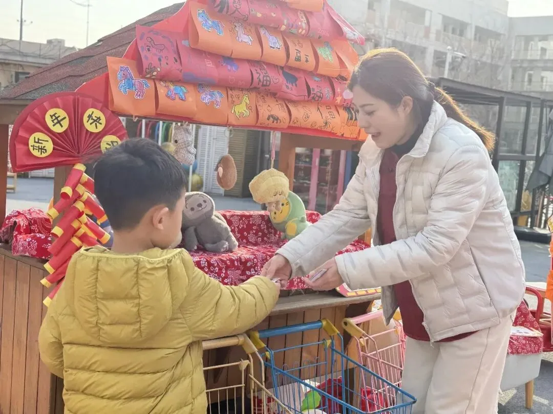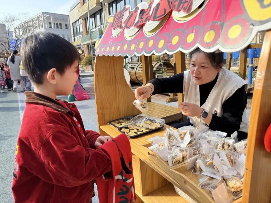 新年乐淘淘活动里,孩子们还化身成了可爱的小摊主,和爸爸妈妈一起张罗摊位。别看他们个子小小的,口才却顶呱呱,热情地吆喝推荐,把摊上的东西都卖光光啦!