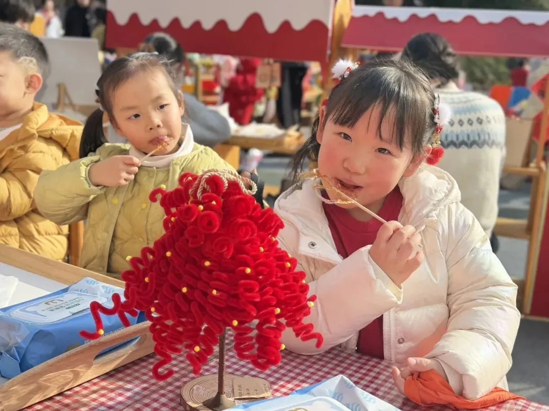 美食一条街更是年味十足!甜甜的糖水、精致的糖画、红彤彤的冰糖葫芦,还有香喷喷的炒货和小点心,孩子们吃得满嘴香甜,小肚子都圆鼓鼓的啦!