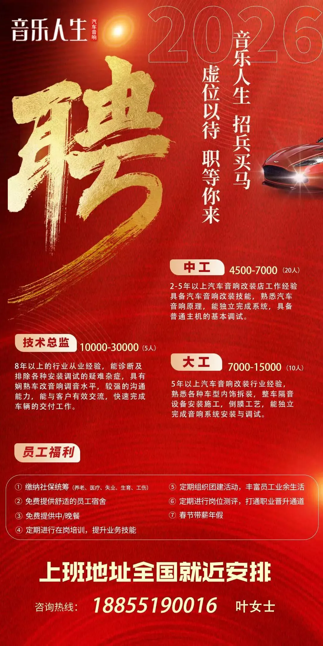 音乐人生汽车音响招聘:工作地点: 南京,无锡,南通,常州,上海,合肥门店安排