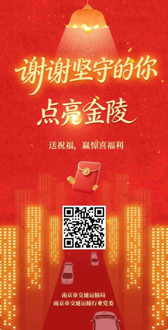 你送我踏上温暖归途,我为你点亮前行明灯。由南京市交通运输局发起“谢谢坚守的你 点亮金陵——送祝福,赢福利”活动,诚邀每一位网友,为春运路上默默坚守的身影送上最真诚的祝福。