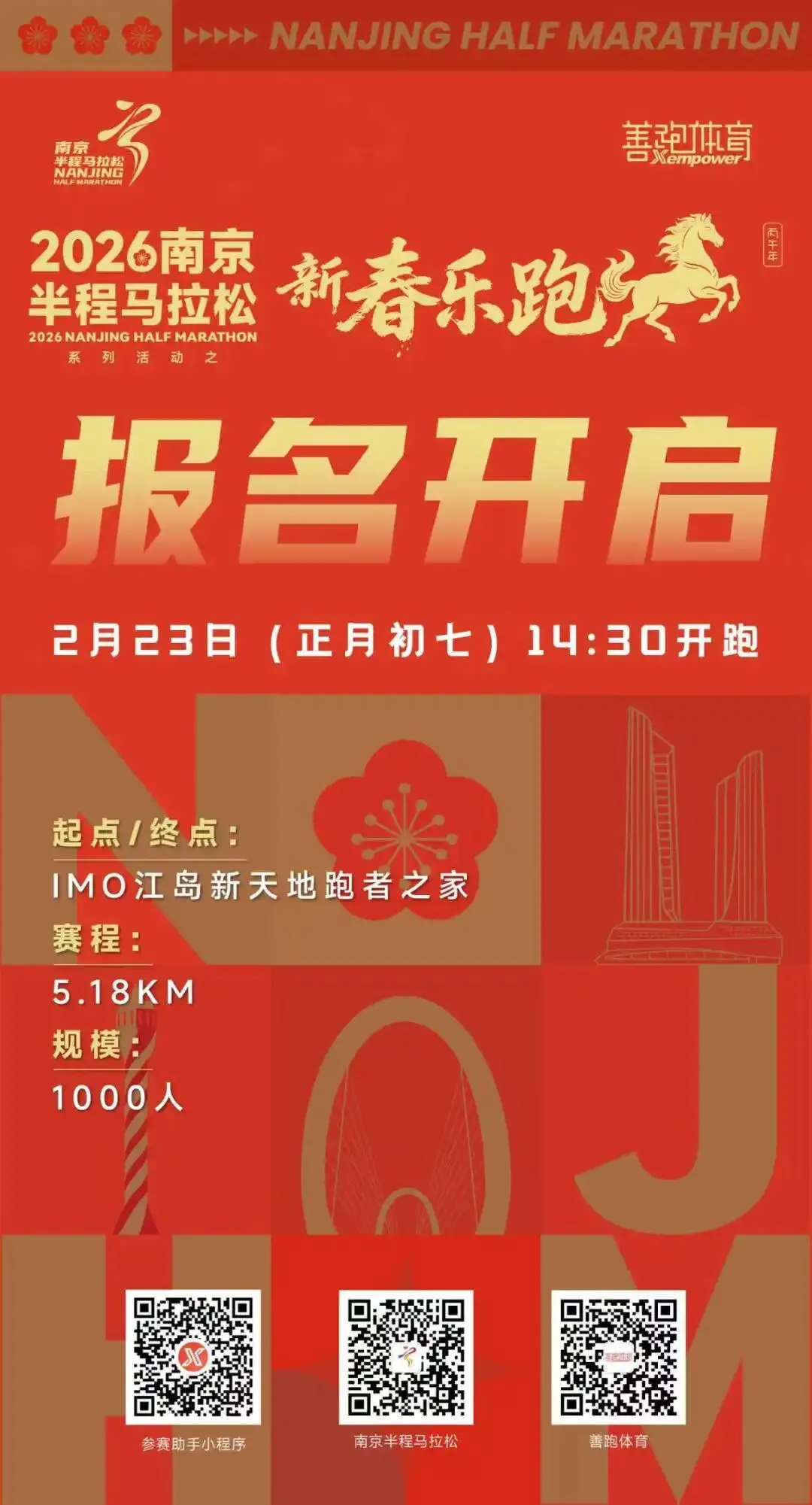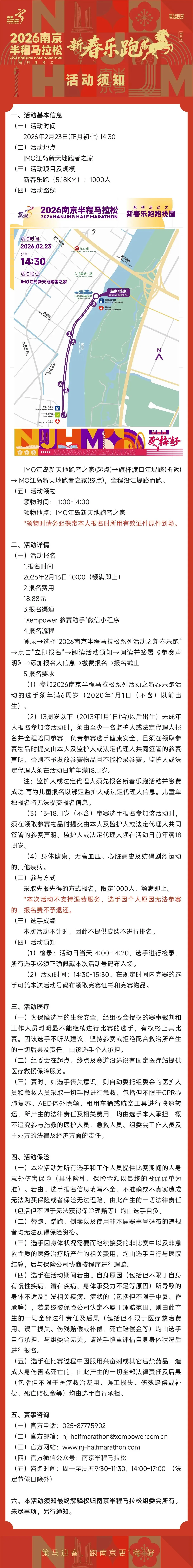 2026南京半程马拉松系列活动之新春乐跑将于2026年2月23日举行,当天活动流程如下: