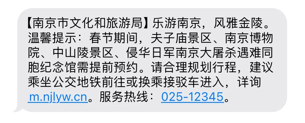 ①如果来宁收到南京市文化和旅游局的短信,打开短信中官方链接,进入“乐游南京”;