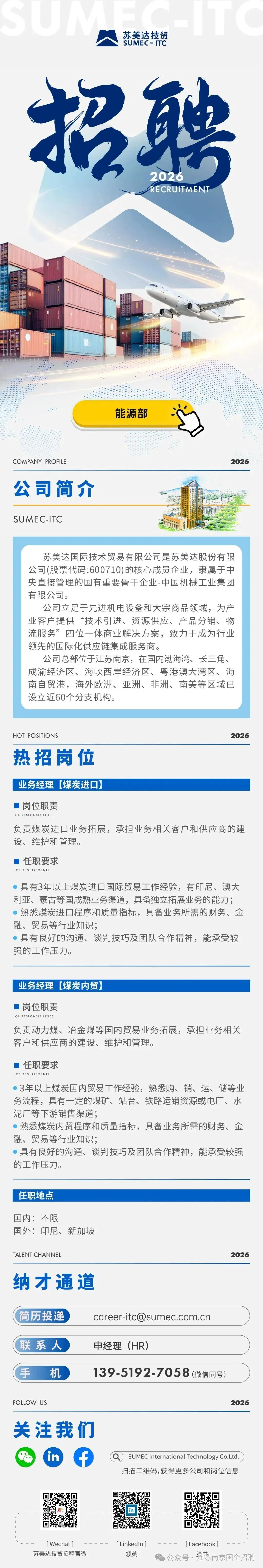 >【南京招聘】苏美达国际技术贸易有限公司招聘公告