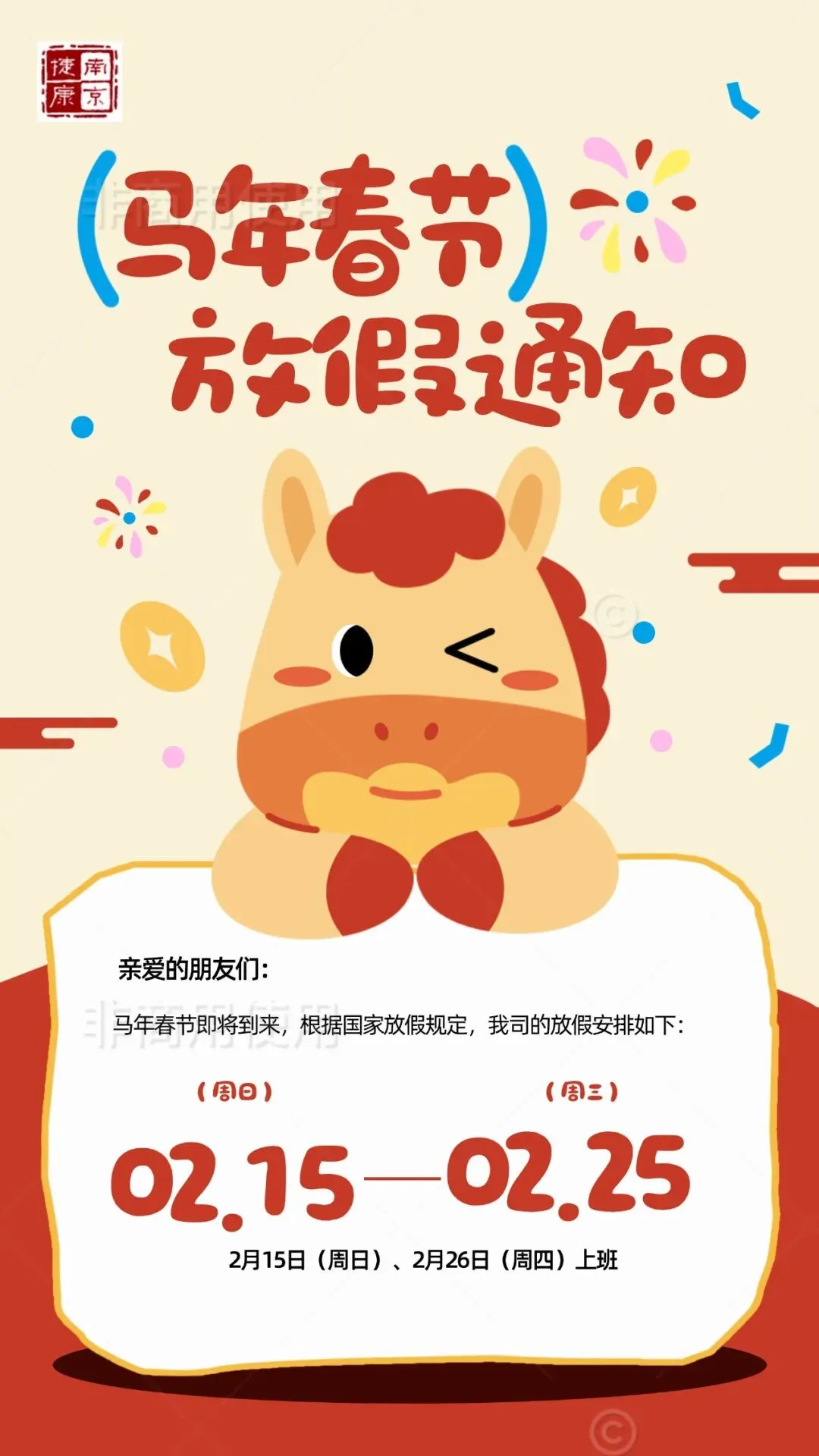 >南京捷康2026年春节假期安排!