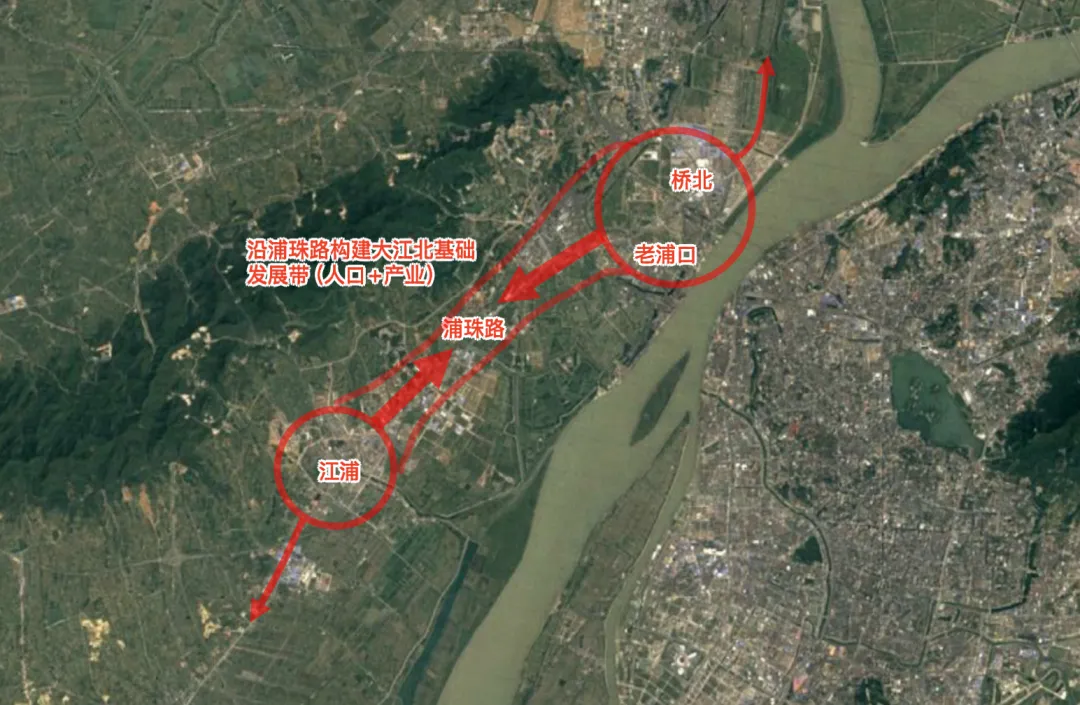 或者强设其中一个老城区,作为江北滨江的起点,比如从江浦开始,向周边蔓延,这也行。主要的发展逻辑就是步步为营,每个阶段都在扩大主体的人口规模和资源强度,从而提升抗风险的能力。当然不管怎么折腾,浦滨路北延和横江大道北延都是需要打通的,这很关键。