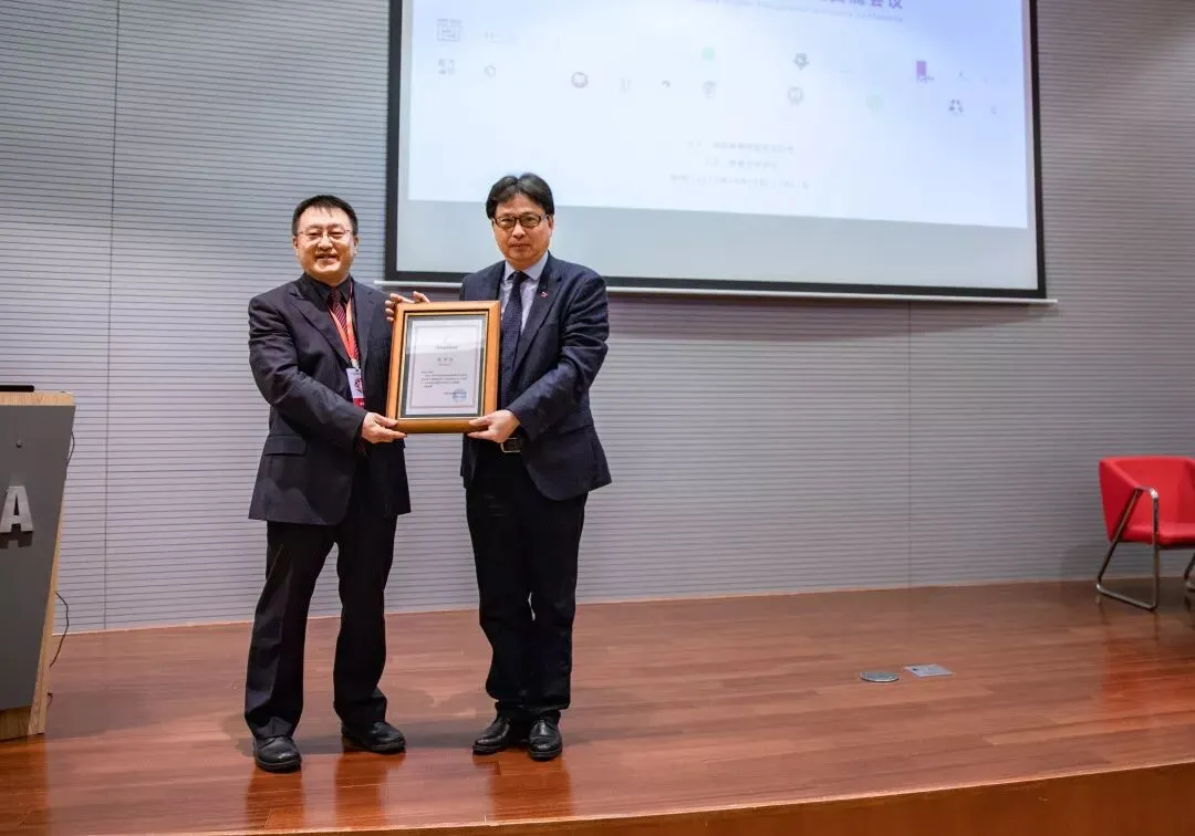中国高等戏剧教育联盟秘书长徐永胜为南京艺术学院颁发承办第七届交流活动暨首届大学生戏剧展演活动的感谢状。