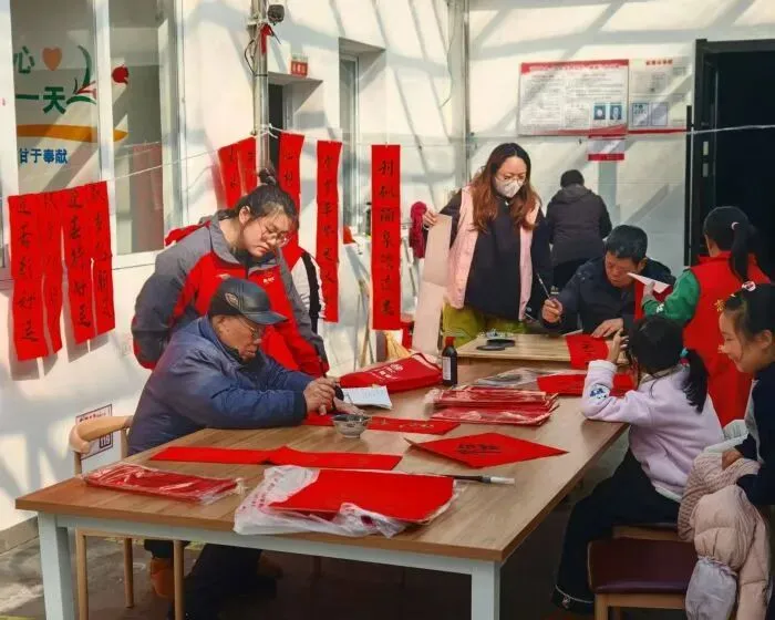 在王村写春联的现场,78岁的李爷爷不仅为自己家写,还应多位老伙伴的请求,为大家“定制”春联内容。有人想要寓意健康长寿的,有人想要祝福子孙学业有成的,李爷爷都乐呵呵地应承下来,精心构思词句,认真书写。他对记者说:“能用自己这点笔头工夫,给老伙计们送去新年的祝福,我觉得特别有意义。这比我一个人在家写字高兴多了。”李爷爷的行为,展现了老年人在获得服务的同时,也能发挥余热、服务他人,实现“老有所为”的价值。