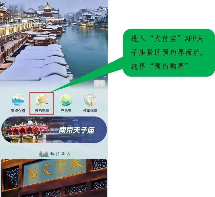 预约方式:游客可通过支付宝App搜索“南京夫子庙”官方小程序进行个人预约。旅游团队需通过专属团队通道预约。