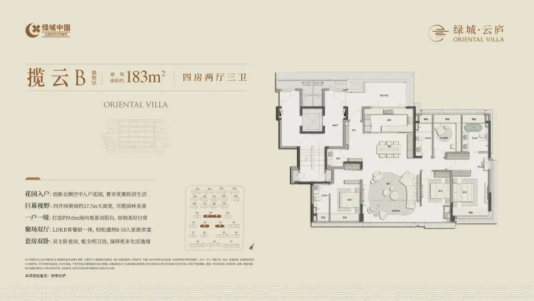 特邀五大顶尖设计团队联袂开发,致敬紫金山南麓低密。共规划建设建面约122-183㎡7层洋房、建面约294-385㎡3层隐山低密,纯低密住区,高净值圈层。