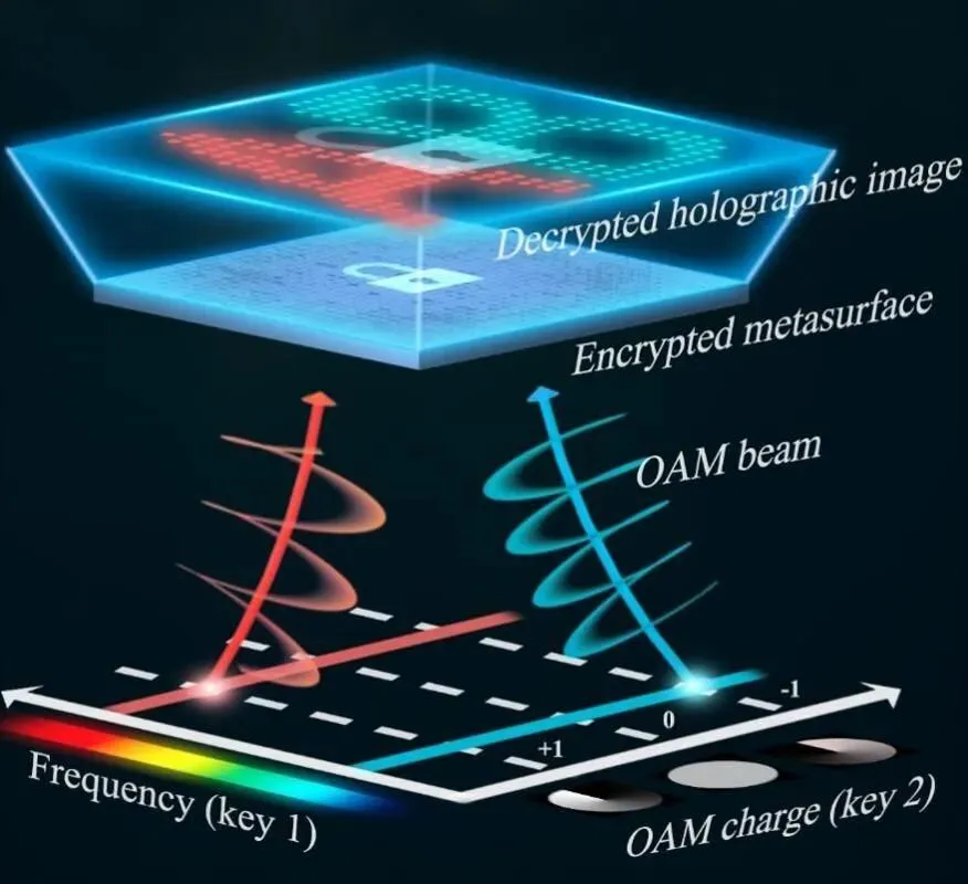 梁彬教授和程建春教授课题组提出的“基于多维复用声学超表面的高容量加密声全息机制”是一项原创性声学技术,它通过轨道角动量(OAM)与频率的多维度复用,实现了对声场的自由调控和声信息的加密保护。这项技术不仅突破了传统声全息的容量限制,还通过“双密钥”机制(特定OAM拓扑荷与频率的组合)为声学信息处理提供了安全保障。该技术的核心创新在于设计了一种能够独立调控声波全部自由度(幅度、相位、频率及OAM)的超材料像素单元,使同一超表面可并行存储和重构多幅声全息图像,同时确保信息传输的安全性。这一技术在医学疗诊、工业检测、声学通信和微粒操控等领域展现出广阔的应用前景,有望为相关前沿领域的技术革新提供新的解决方案。