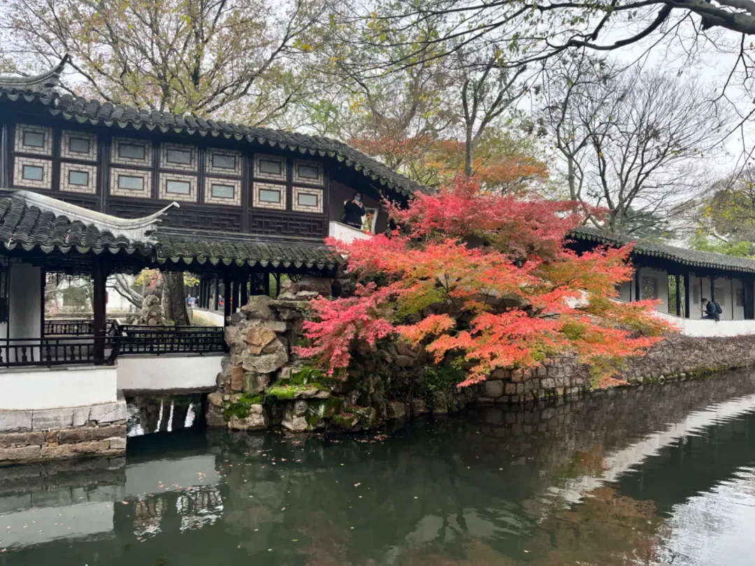 沿路而行,梧竹幽居四面有四个园洞,各向成画。绿漪亭在园林边角,把外围池面“点活”。绿漪亭可赏春景,待霜亭主打秋景,雪香云蔚亭主打冬景,荷风四面亭主打夏景,交相呼应。