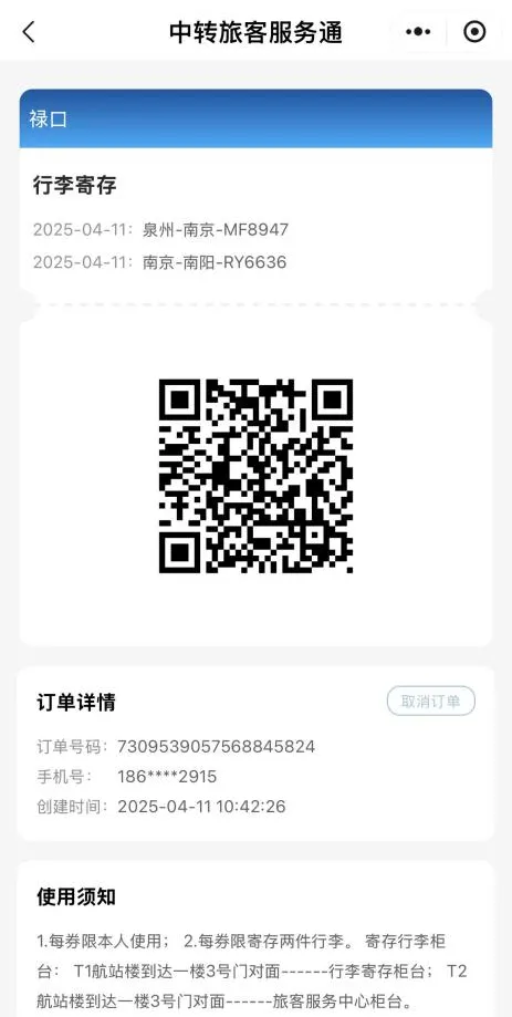 此外,通过空铁联运抵达南京南站的乘客,可以在南京南站城市候机楼将行李托运,“解放双手”去机场。不过目前有一定的限制:1、乘坐当天航班,预计起飞前2小时以上的可以办理。2、国内除春秋、九元、西部、中国联合、首都、长安航空等一些差异化航空外的所有航空,以及澳门航空前往澳门的NX127航班可以在南京南站办理。