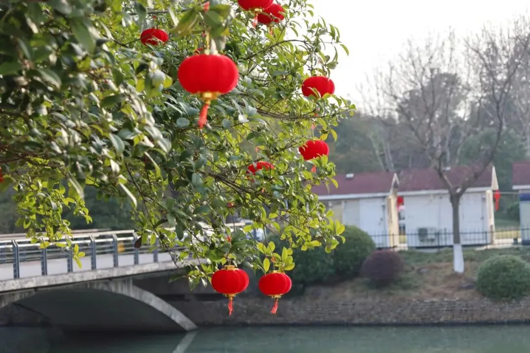 江豚广场的林间,一盏盏灯笼透出温润的暖黄,像一个个会发光的祝愿。