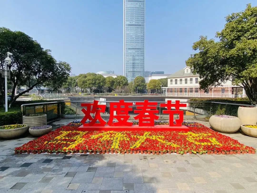 漫步滨江公园,处处花团锦簇。今年的滨江公园延续传统、红的黄的报春花与角堇、石竹们一起在各个节点位置铺陈开来,约50000盆色彩斑斓的时花与新年装饰相映成趣,将滨江岸线装点得如诗如画。