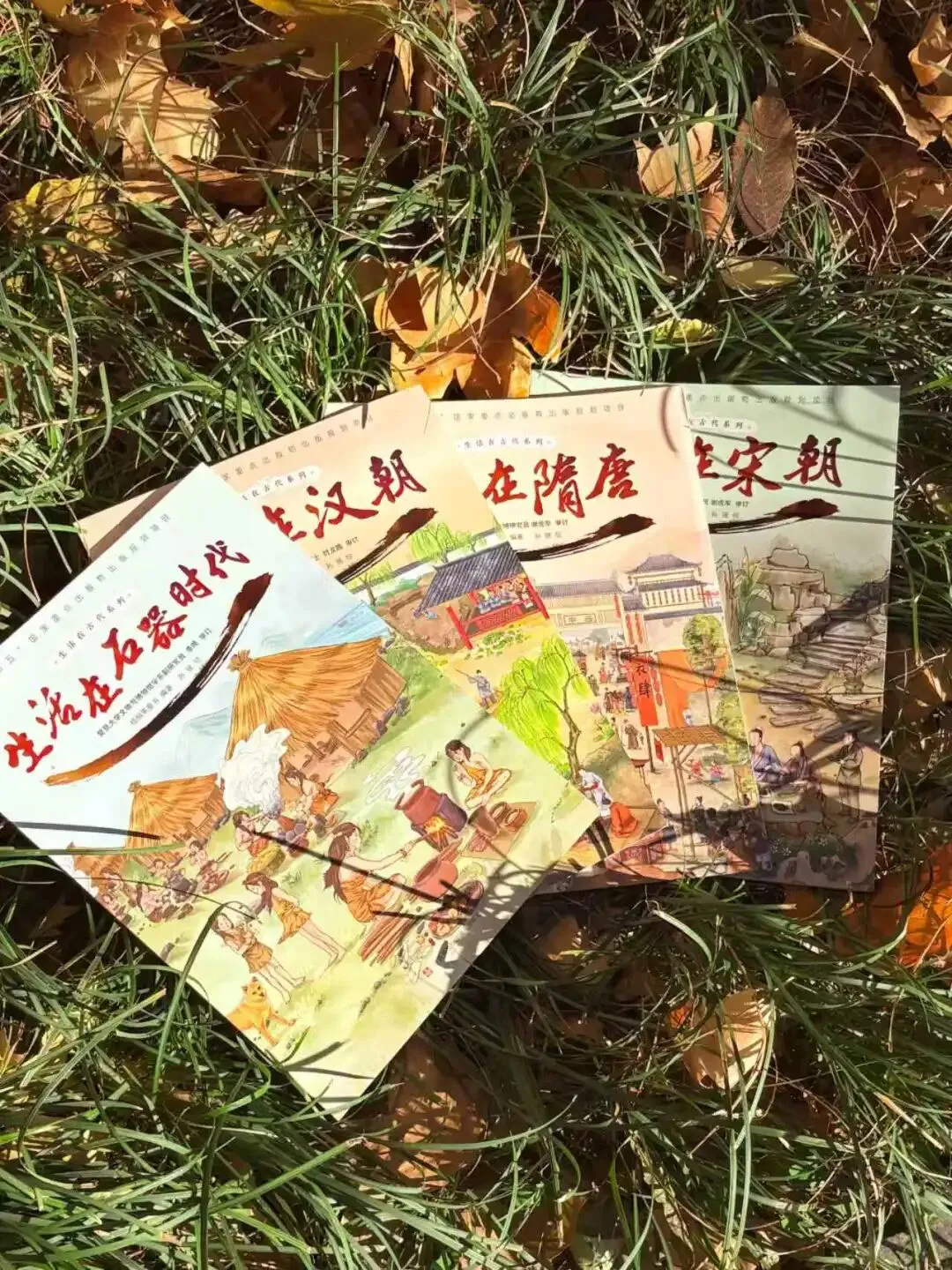 这套书一共四本,分别是《生活在石器时代》《生活在汉朝》《生活在隋唐》《生活在宋朝》。