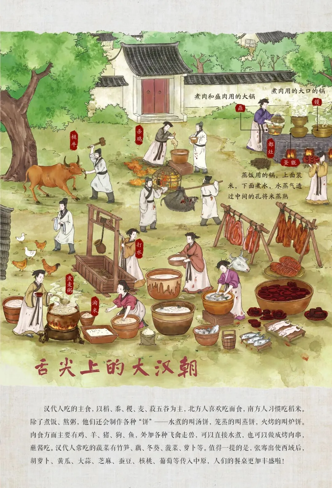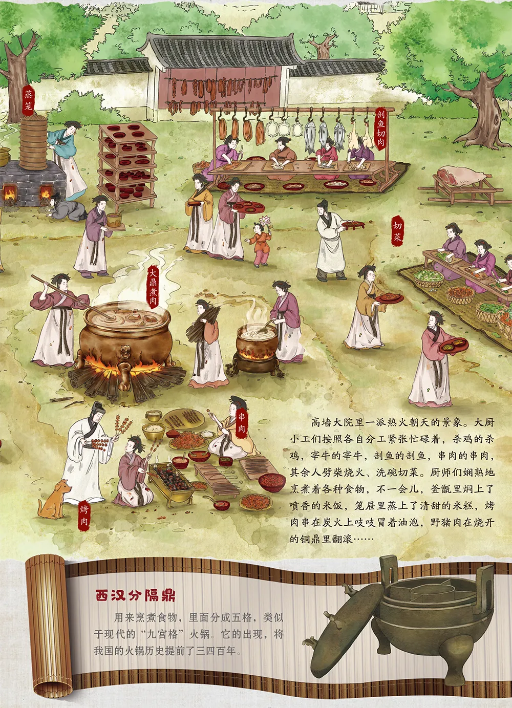 翻开书,四大历史时期的生活图景扑面而来。就像推开一扇门:汉朝人原来也吃火锅?宋朝就有“外卖”了?隋唐的长安街好热闹啊!