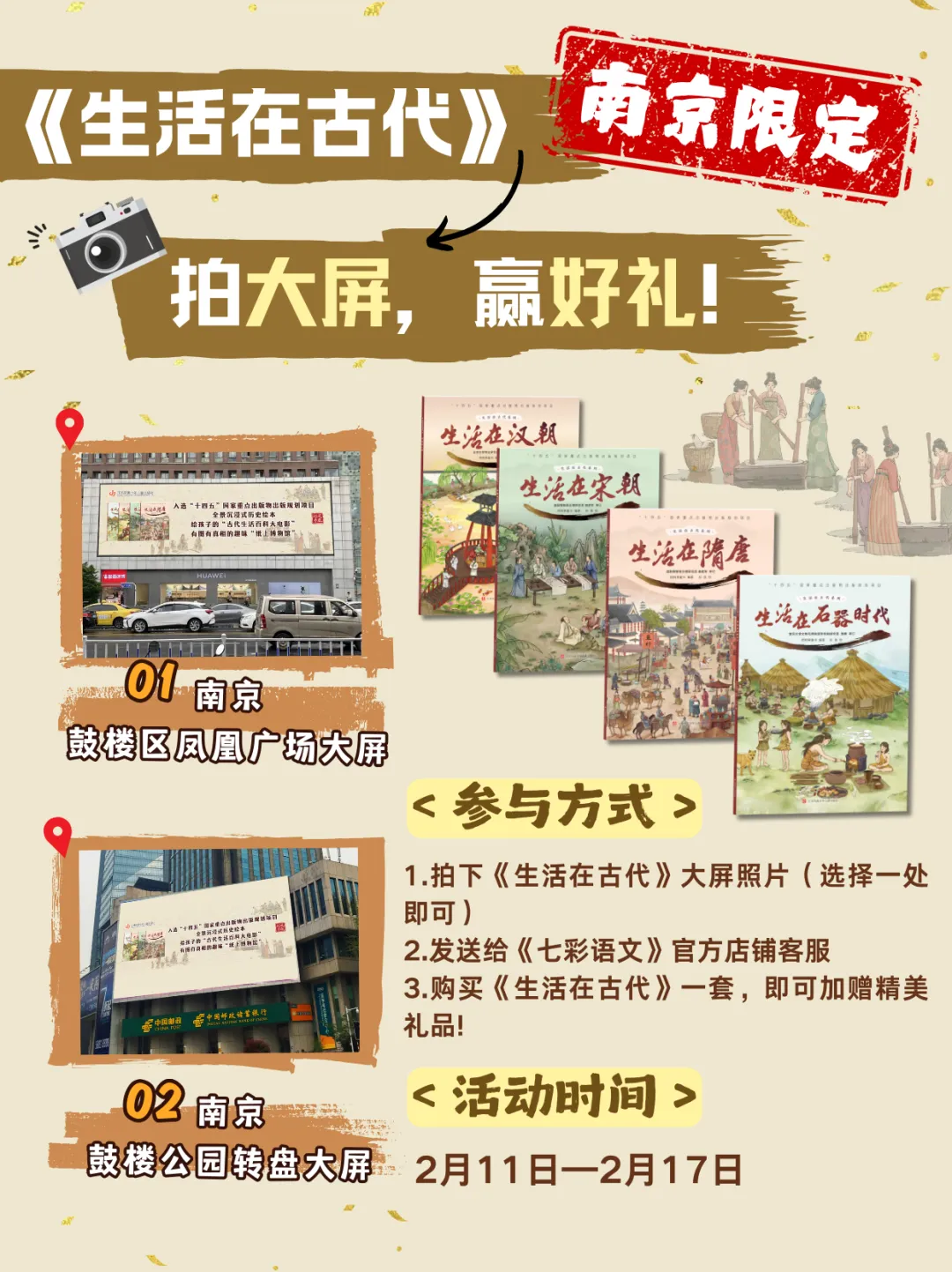 将照片发送给《七彩语文》官方店铺客服,下单《生活在古代》这套书,将会获取专属赠品!