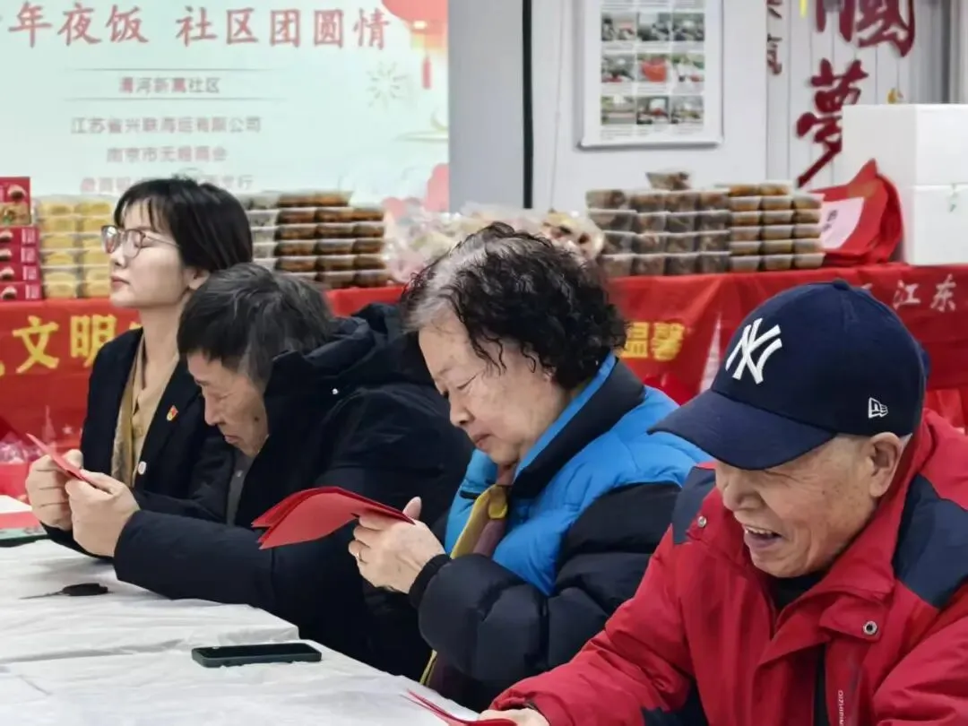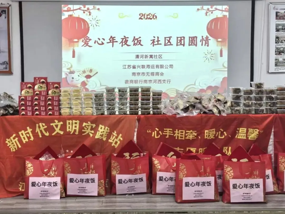 2月11日,年味正浓。南京市无锡商会党支部一行走进清河新寓社区,与社区老人们欢聚一堂,共同开展“爱心年夜饭”主题活动。窗外春寒料峭,室内暖意融融,党员志愿者们与老人一起剪窗花、包馄饨,在传统年俗活动中传递温情,用实际行动践行敬老爱老的传统美德。