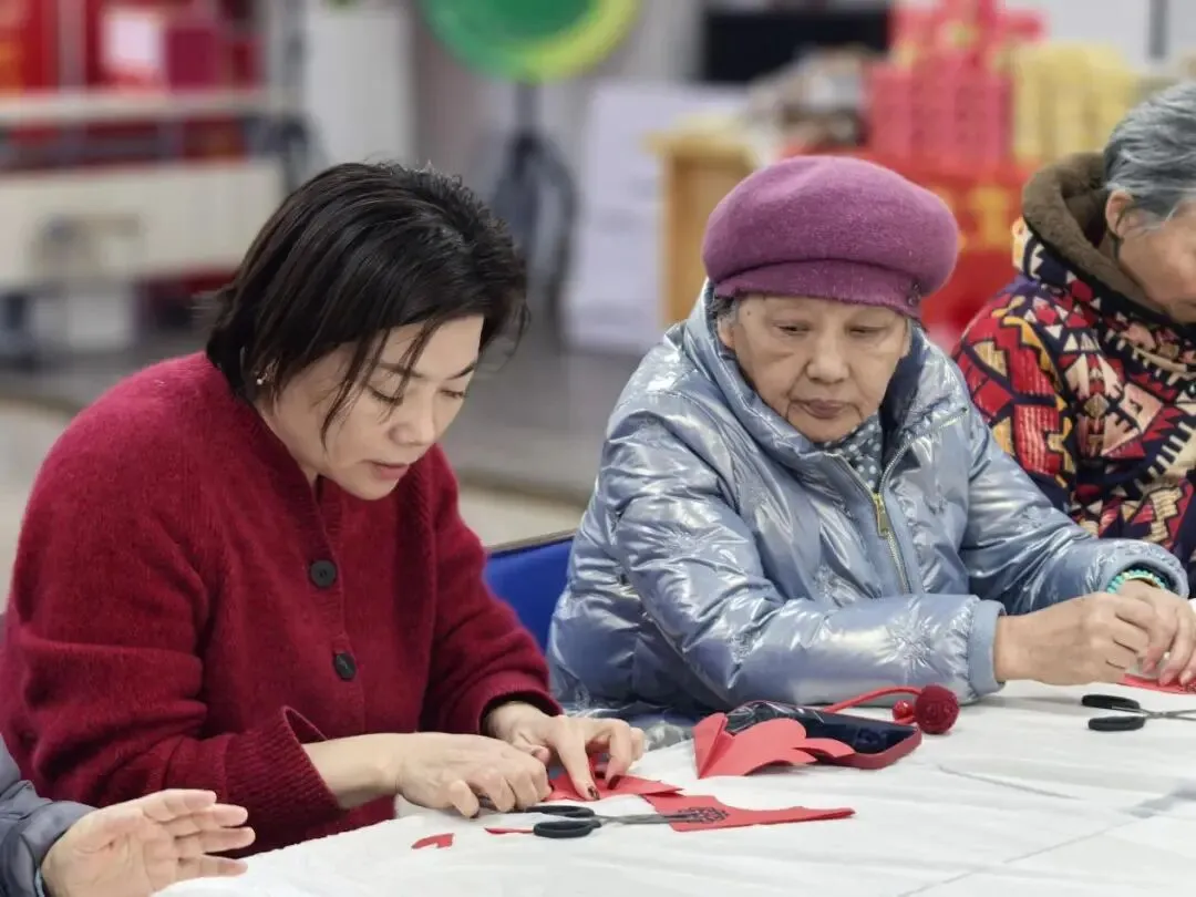 剪窗花环节率先展开,党员志愿者将红纸、剪刀一一分发到老人手中。年轻党员们耐心陪伴在老人身旁,一边协助操作,一边聆听老人讲述过去过年的习俗。不一会儿,一幅幅寓意吉祥的“福”字、生肖图案在指尖绽放,红纸翻飞间,年味儿悄然流淌。
