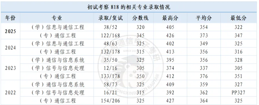 以下统计不含专项计划。通信工程士兵计划进复试4人,录取3人,最低录取分303