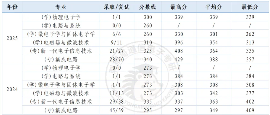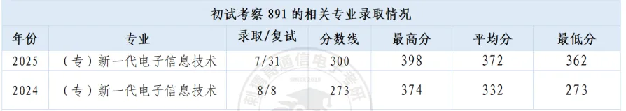 综合近几年分数来看,上岸难度在3颗星(不考虑每年可能的特殊扩招情况)。818专业课难度属于A-(信号与系统 + 数字电路)(不与多门课院校比较),近几年出题角度新颖,要求考生要有扎实的专业课基础,否则一道题会出现无从下手的情况。由于891从24年才考察,所以专业课难度属于C,但是要求考生基础扎实,不然很容易失分。目前来看,通信方面的专业上岸难度不低,专业课难,报考人数也多。电子方面的专业上岸难度较小,专业课难度低,而且开设专业较多,但是存在专业之间的博弈。初试的高分也为上岸奠定了绝对的优势,绝对分数较高者优势大,但因复试和初试各半的占比,也有大量初试分数一般的同学后来居上。复试绝对公平,需要大家认真对待,往年有不少双非跨考成功甚至二本上岸的案例。