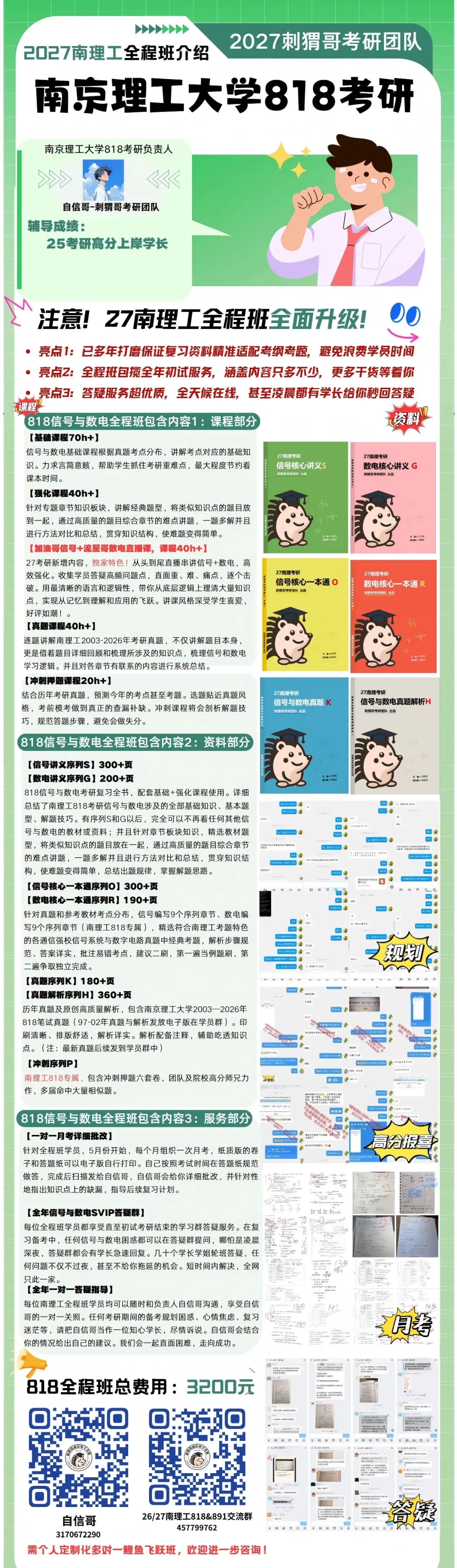 刺猬哥考研团队成立11年,专注通信、电气、物理和数学考研辅导,团队成员来自于浙大、西交、华科、成电等985高校,专业实力强劲,执教经验丰富。