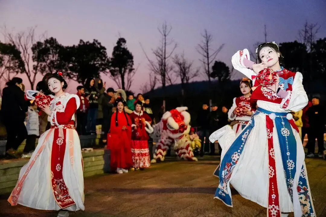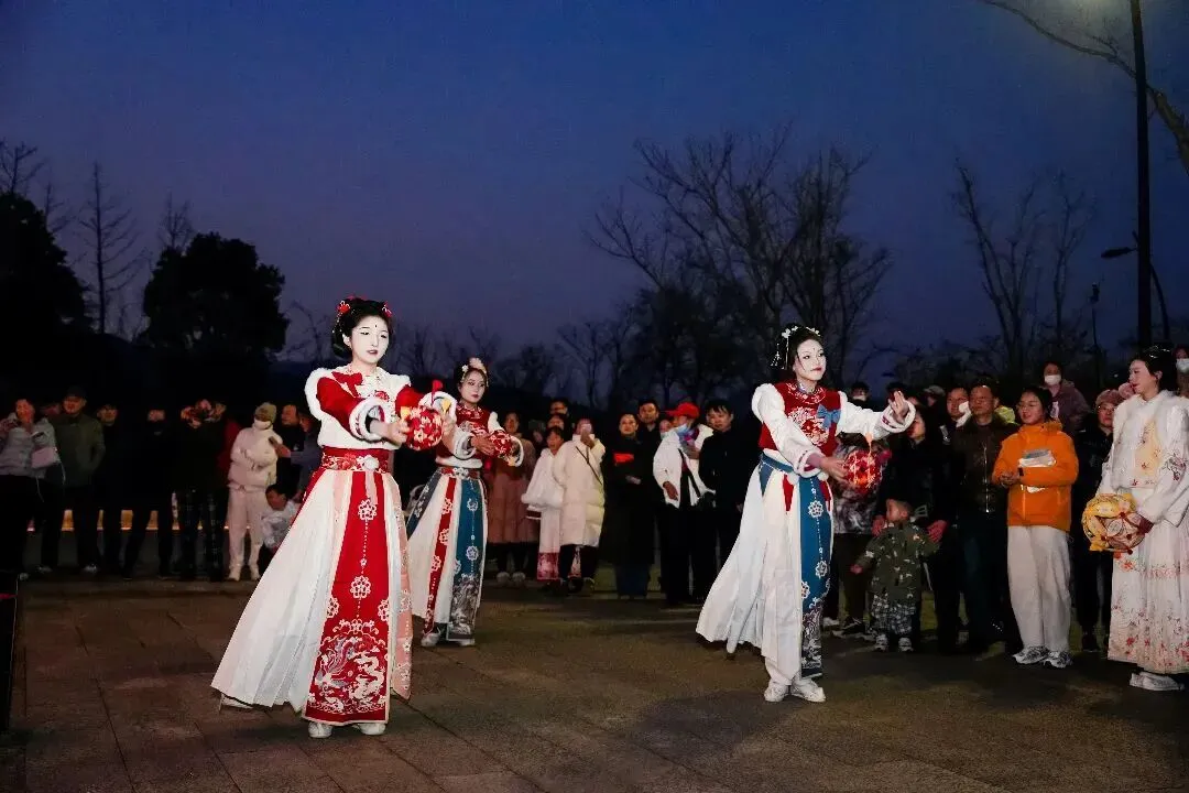 沿着湖畔步道前行时,威武的舞狮、绚丽的鱼灯巡游、雅致的古风舞蹈轮番上演,让整条道路化作流动的国风盛宴。沉浸式的互动体验,更让游园乐趣翻倍。