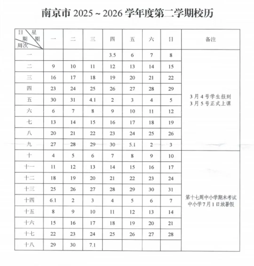 南京中小学第二学期
