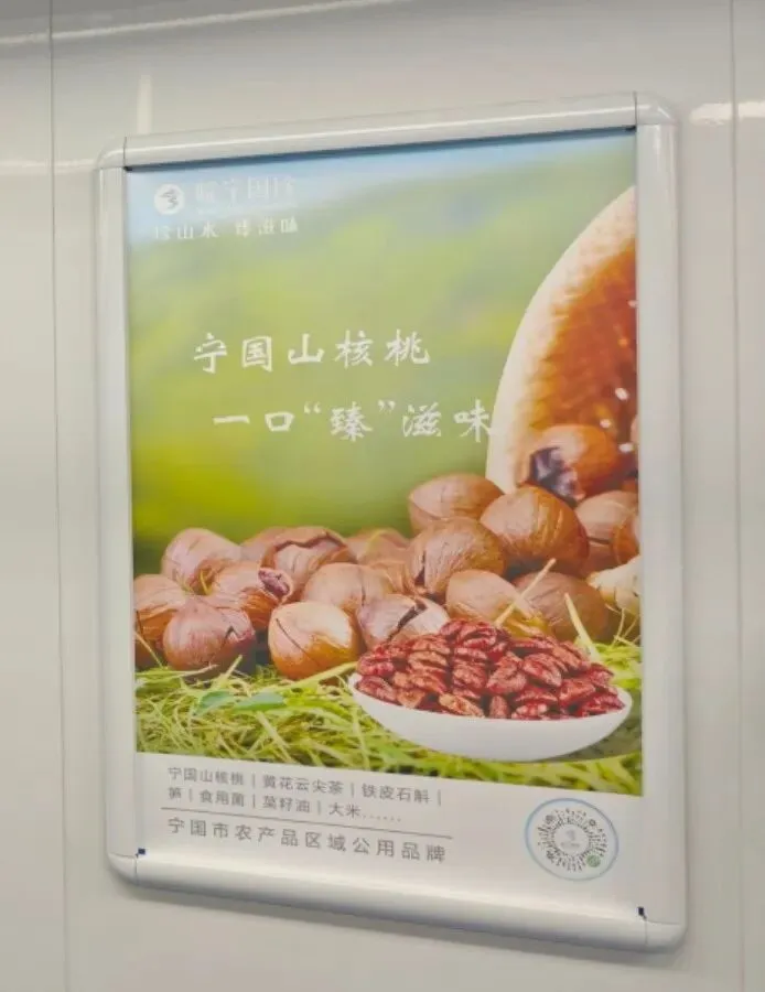 作为南京地铁最早开通的线路,1号线不仅是一条便捷的交通线路,更是一条串联起金陵必打卡景点的文化走廊。宁国市农业农村局与南京地铁携手,将来自“中国山核桃之乡”“中国元竹之乡” “中国前胡之乡”的生态臻品——宁国山核桃、黄花云尖茶、铁皮石斛、笋、食用菌、菜籽油、大米等,以及“珍山水,臻滋味”的品牌承诺,融入南京市民的日常交通场景,也融入了这条游客游走的文化长廊。