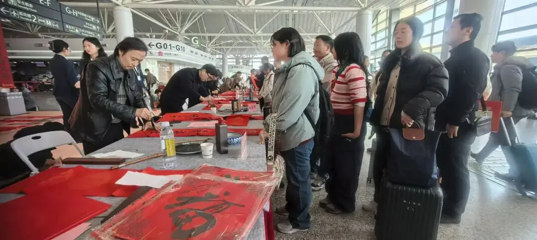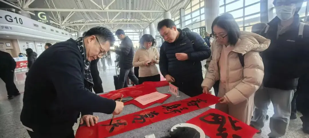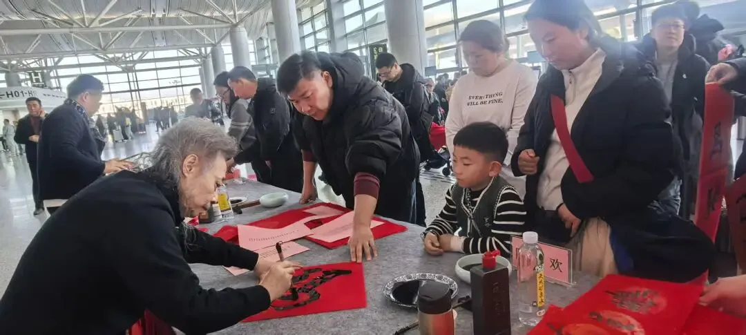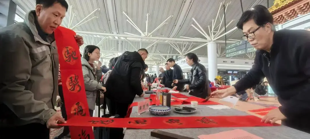 “在机场收到手写春联,比印刷品更有温度,也更有年味”,一位即将登机的旅客捧着墨迹未干的作品,笑意盈盈地说。也有旅客表示,这样的活动为旅途平添了一份惊喜,更让人在匆匆归途中感受到中华优秀传统文化的魅力与江苏的人文关怀。