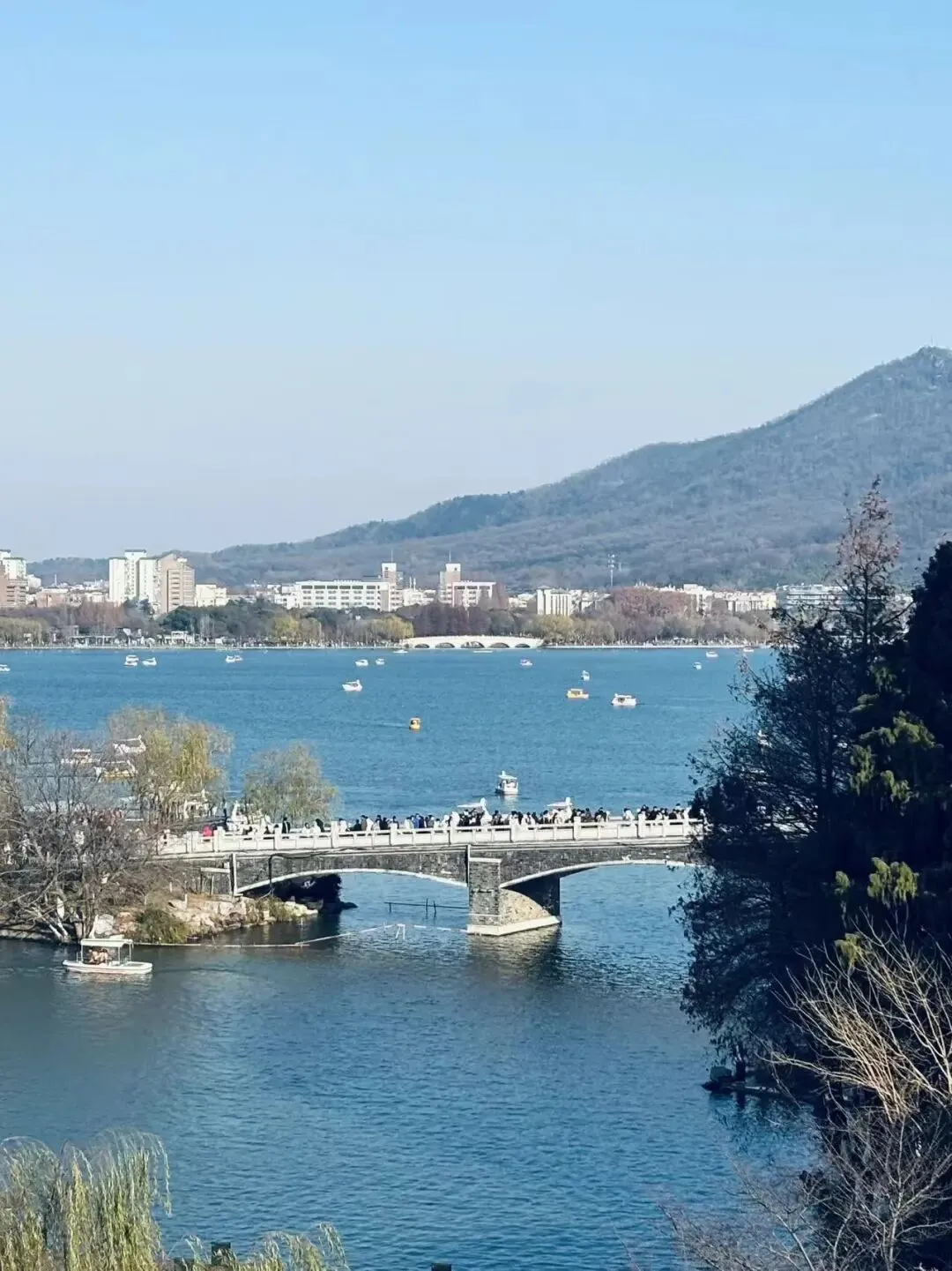 直到因缘际会再次来到了南京。这次我终于看到了玄武湖蓝,也算是了结了心愿。天气好的冬日里,玄武湖平平无奇的水能变成如大海一般的蓝色。“水色天光共蔚蓝”。
