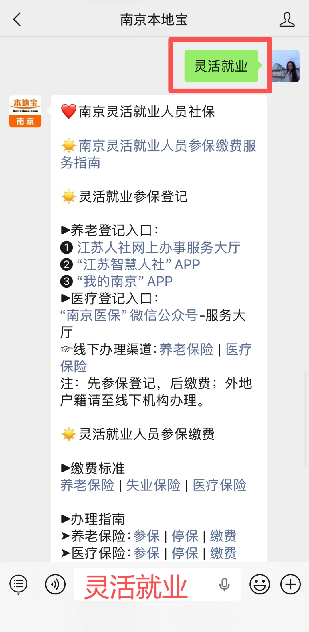 小编提醒:扫描下方二维码,关注南京本地宝,后台对话框回复【灵活就业】即可获取南京灵活就业社保线上、线下参保指南;