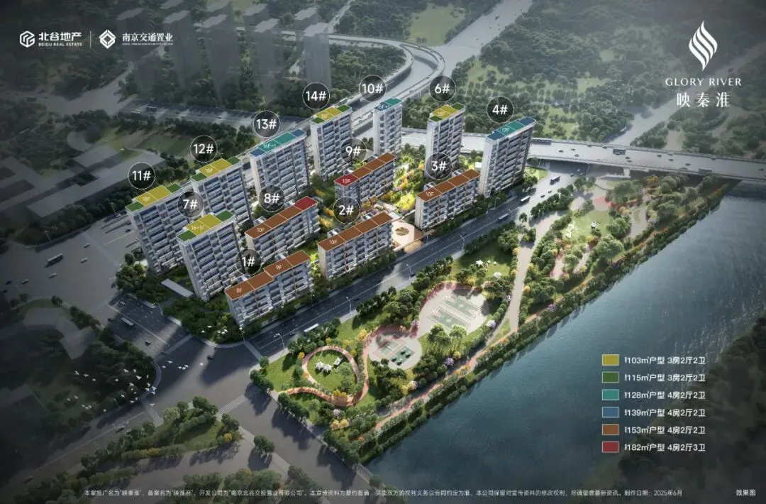映秦淮:南站首个四代宅,一线正观秦淮河,容积率1.8,打造13栋8-10层洋房和17-18层小高层,配备约2500㎡会所和悬浮吧台式恒温泳池。