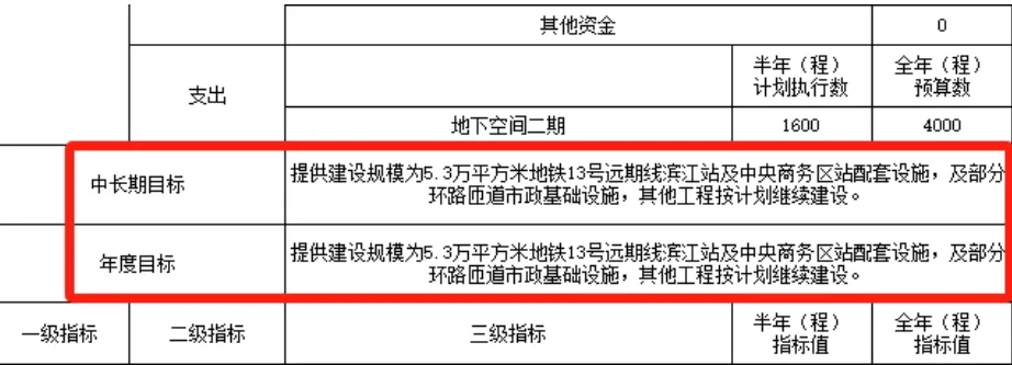 提供建设规模为5.3万平方米地铁13号远期线滨江站及中央商务区站配套设施,及部分环路匝道市政基础设施,其他工程按计划继续建设。
