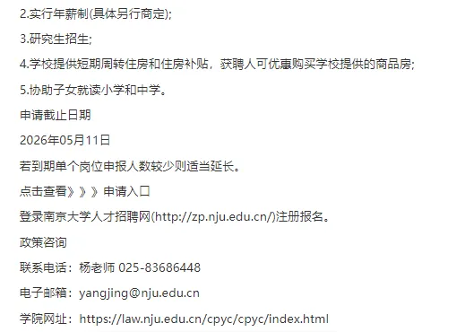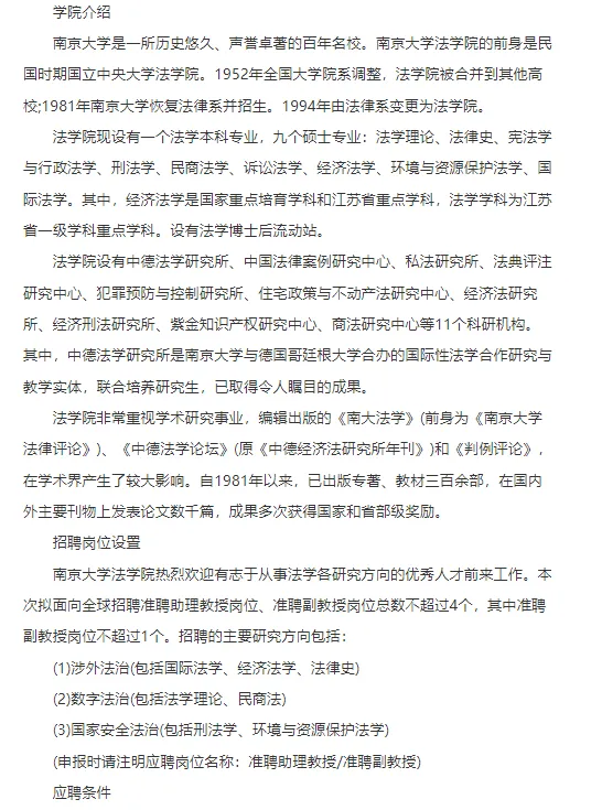 >南京大学法学院准聘长聘岗位(事业编制)招聘4人