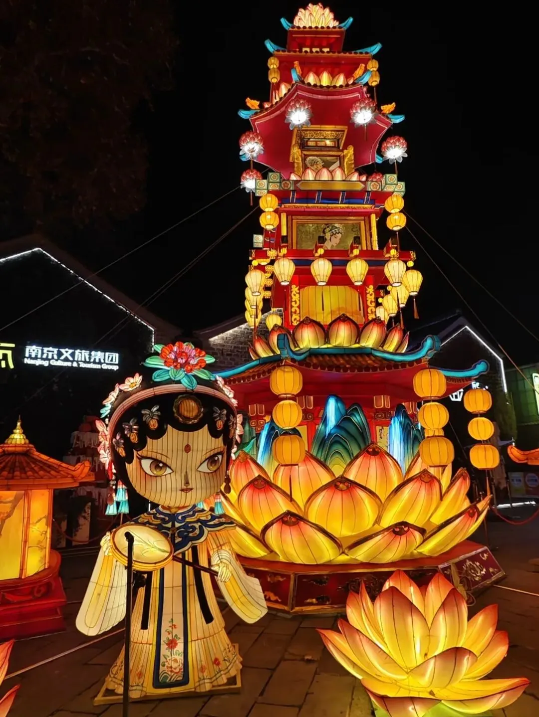 大板巷“熙南有戏”的主灯也很美,以灯笼塔为主体,塔体分层再现《牡丹亭》《西厢记》桥段,既具有戏曲元素有文化传统的美,又有科技感的氛围。