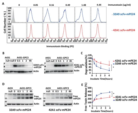图2:32A9 scFv-mPE24 和 42A1 scFv-mPE24 行为差异分析