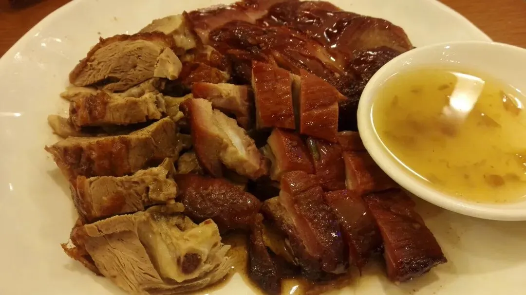 烧味三拼,因为晚上的关系,很多东西没有了,拼的是烤鸭、叉烧和烤排。烤鸭和烤排都还不错,特别要提一句的是叉烧,从来没在哪家烧腊店里吃到过切那么大块的叉烧,而且还是好多块,一口下去软嫩多汁。
