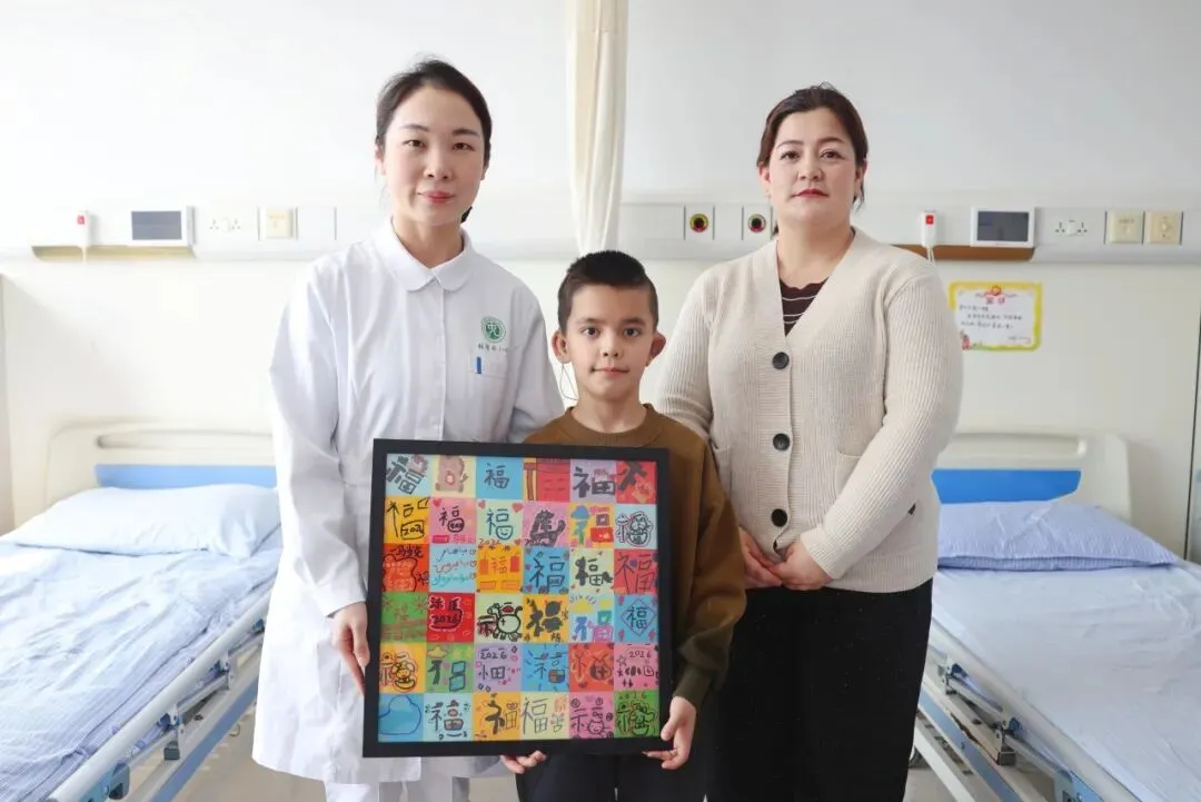 中大医院烧伤整形科护士长张倩婷拿着小朋友们一起制作的“百福图”介绍说,在马年春节来临之际,中大医院“小耳之家”组织了丰富多彩的活动,伊力亚斯和小朋友们一起写福,并把这些福拼在一起,把所有祝福送给他。除此之外,他第一次到医院时,为了缓解他的紧张情绪,“小耳之家”准备了一系列活动:组织志愿者们陪伴伊力亚斯和病房里的孩子们一起玩魔术、听科普、做纽扣画、接力画画……明显感觉到,孩子脸上的笑容多了。