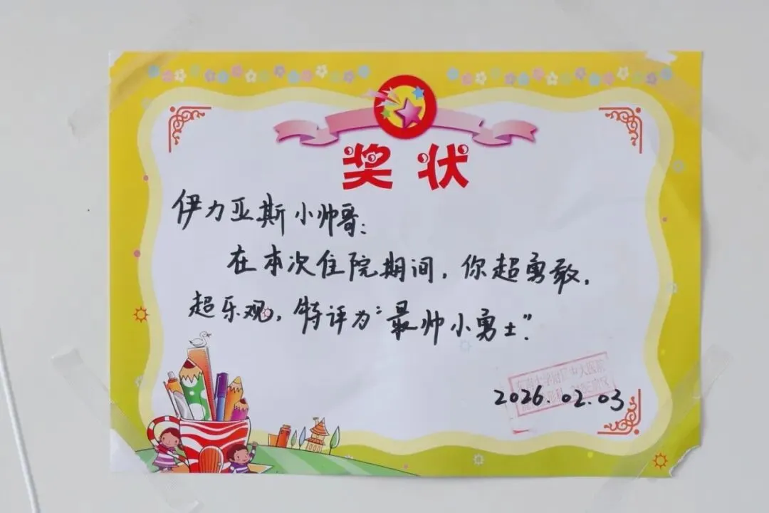 在伊力亚斯术后恢复期间,中大医院烧伤整形科的医护人员不仅专注于他的身体康复,更用心呵护他的童心,“小耳之家”精心准备了马年新春主题活动,邀请伊力亚斯与病区里的其他患儿一同参与,画马写福迎新春。在活动现场,伊力亚斯认真地画了一匹红彤彤的中国马,正在奔腾向前。