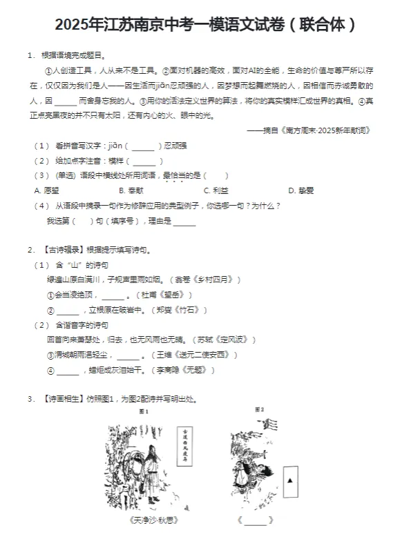 2018-2025学年南京各区初三一模语文真题及答案解析