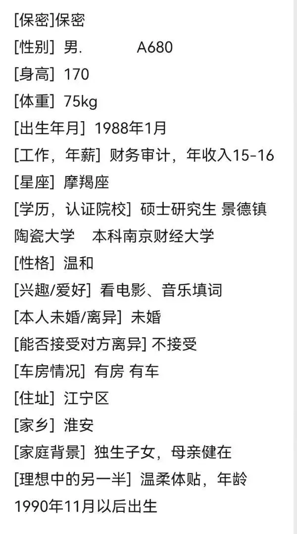 这是一个浮躁的时代,也是一个认识人成本极低的时代,无效的人和事占据太多的时间,骗子、约炮、理财销售等等让我们产生焦虑、内耗,为了帮助大家节约时间,相亲宝公众号发帖人不公布联系方式,我们红娘负责过滤一些不靠谱的人,专门进行验证,核实。提示大家:相亲急切的心情可以理解,但相亲过程中不要有任何金钱往来,切记切记。精准一对一推荐介绍,唯一线下门店地址:秦淮区大行宫长安国际2307。